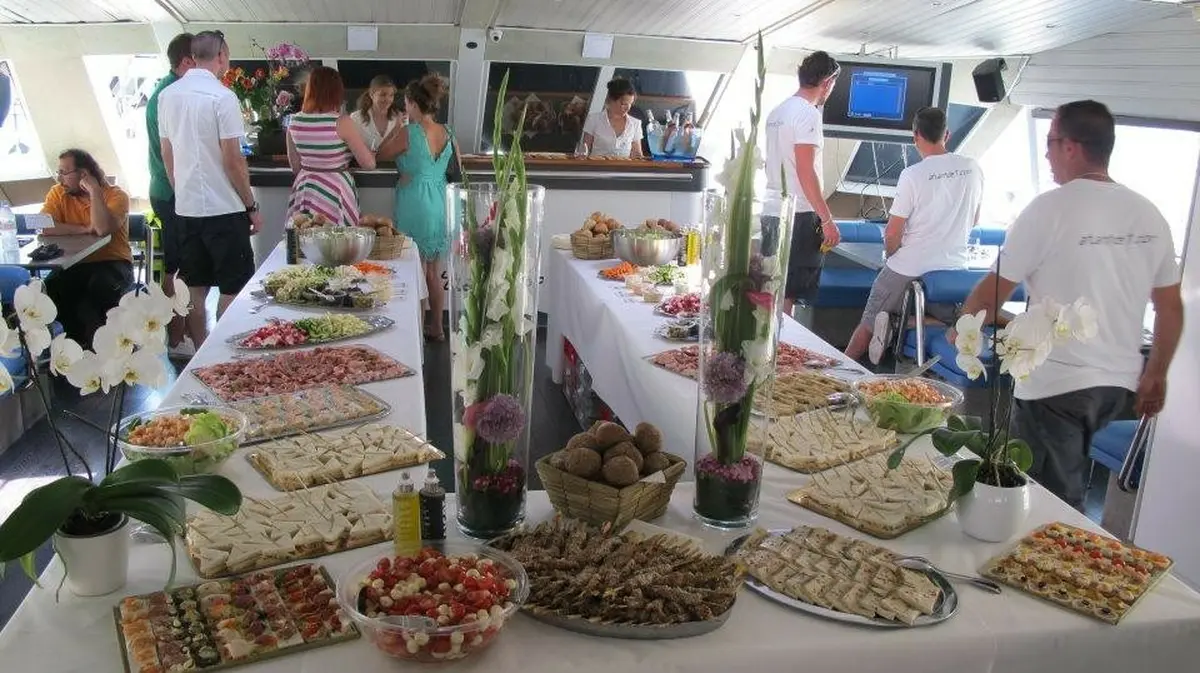 From champagne moments on the upper deck to refined buffet selections served throughout the day, every detail is designed to elevate your Grand Prix weekend. Discover the elegant terraces, comfortable indoor lounges, panoramic viewing areas and the vibrant energy that surrounds Atlantide 1 during the Monaco Grand Prix.